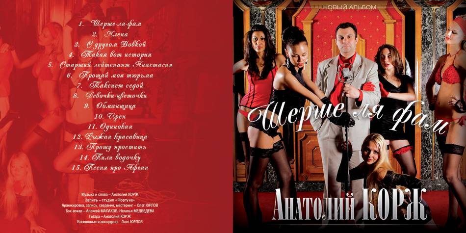 Исполнитель: Анатолий Корж Альбом: Шерше ля фам Год выхода: 2010 Жанр: Шансон Битрейт аудио: 128 kbps Продолжительность: 00 : 55 : 52